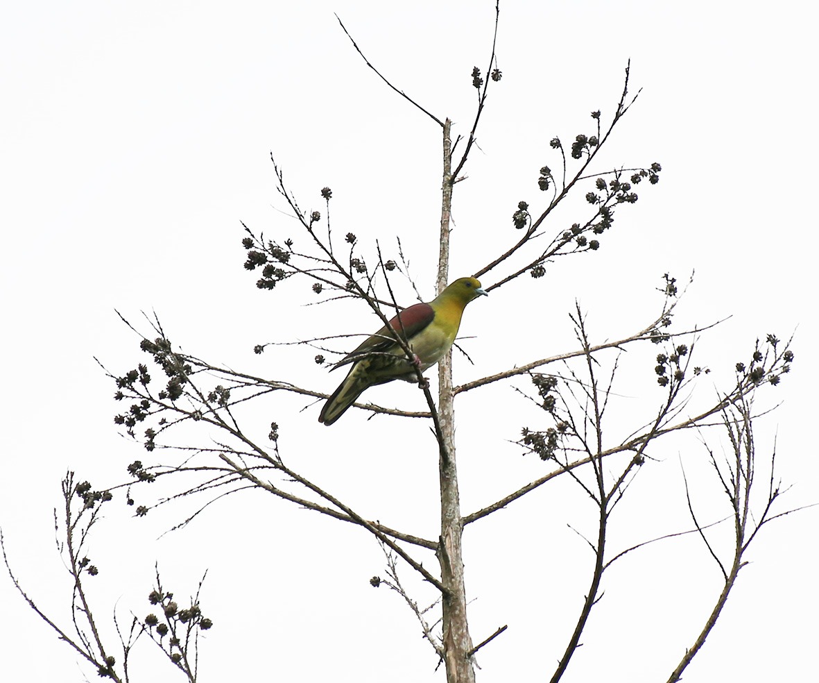 足元にマムシがいるのに気が付いて撮影をしていたらアオバトが飛んできて近くの木にとまったのですかさずパシャリ!ただ、足元にマムシがいるので気になって視線をずらしたら飛んでいってしまいました。
